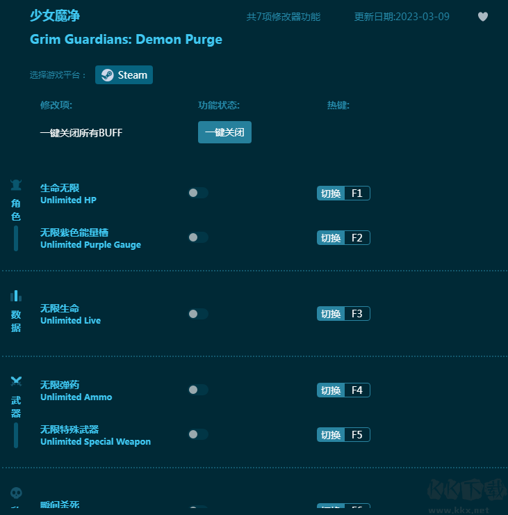 《少女魔净》带来不一样的美少女恶魔城游戏,操作美少女在恶魔城中战斗。KK下载站带来这款《少女魔净修改器》能为玩家提供无限生命,无限紫色能量槽,无限弹药,无限特殊武器等等辅助,帮助玩家冒险更轻松,游戏体验更佳!感兴趣的朋友不要错过,KK下载站推荐大家下载体验!