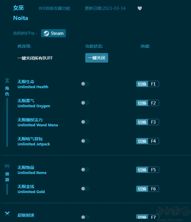 《女巫》是一款动作魔法游戏,使用你创造的魔法,在这里战斗。这款《女巫修改器》为玩家提供无限生命,无限氧气,无限魔杖法力,无限喷气背包,无限物品,无限金钱等众多游戏辅助,让玩家的游戏冒险更轻松有趣,游戏体验更佳!感兴趣的朋友不要错过,KK下载站推荐大家下载体验!