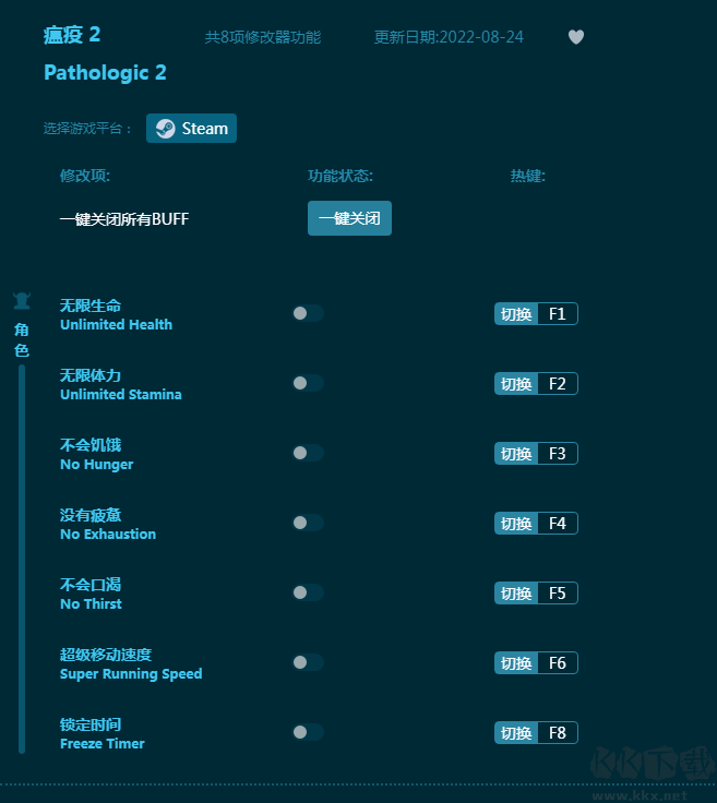 《瘟疫2》给予玩家12天时间,制作解药对抗瘟疫。《瘟疫2修改器》能帮助玩家更轻松制作药品,提供无限生命,无限体力,不会饥饿,不会疲劳,不会口渴,超级移动速度等众多游戏辅助,让玩家的游戏体验更轻松愉快!感兴趣的朋友不要错过,KK下载站推荐大家下载体验!