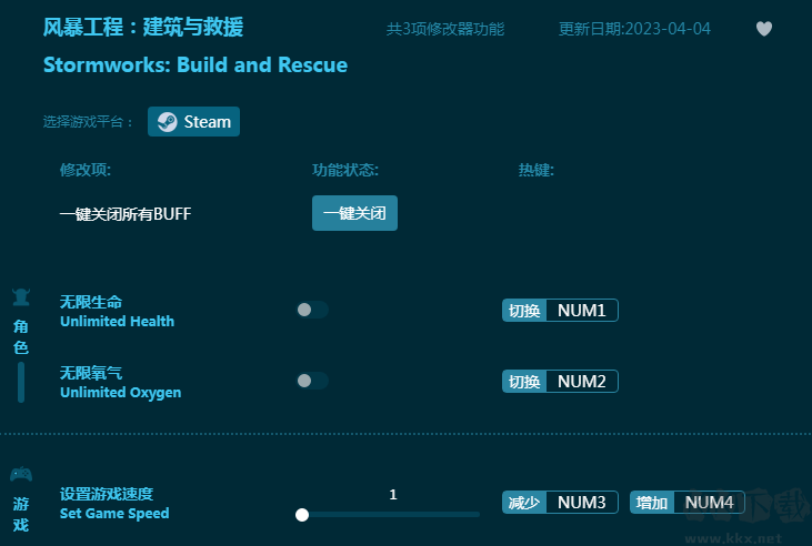风暴工程建筑与救援修改器为游戏玩家们带来丰富的游戏辅助功能,帮助降低游戏难度,游戏更轻松。包括无限生命,无限氧气,设置游戏速度等等,为玩家救人提供帮助,救出更多受灾的人民!感兴趣的朋友不要错过,KK下载站推荐大家下载体验!