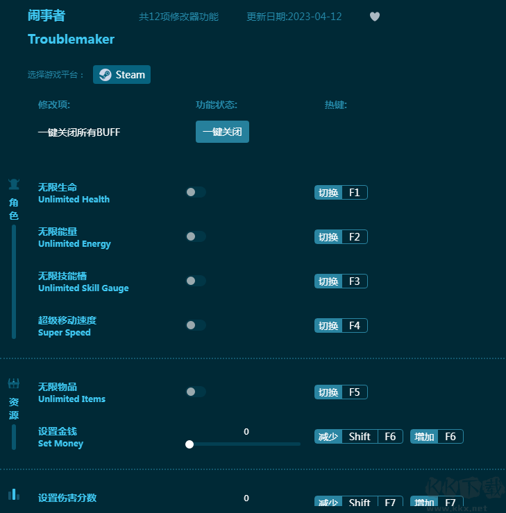 《闹事者拉帮结派》是一款高中校园动作游戏,在混乱的学校保护自己,成为最强。这款《闹事者拉帮结派修改器》为玩家提供帮助:无限生命,无限能量,无限技能槽,超级移动速度,无限物品,无限金钱等等,让玩家成为超级学生,样样精通,游戏体验更爽!感兴趣的朋友不要错过,KK下载站推荐大家下载体验!