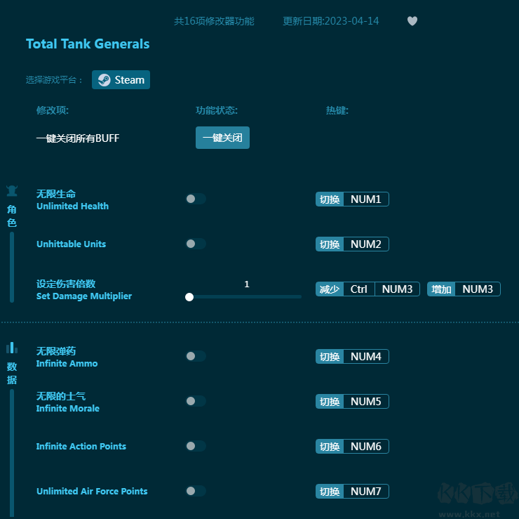 《全面坦克战略官》带来全新的二战回合战略游戏,KK下载站提供这款《全面坦克战略官修改器》帮助玩家降低游戏难度,获得无限生命,无限弹药,无限士气,伤害倍数等强力游戏辅助,让玩家的游戏体验更爽快!感兴趣的朋友不要错过,KK下载站推荐大家下载体验!