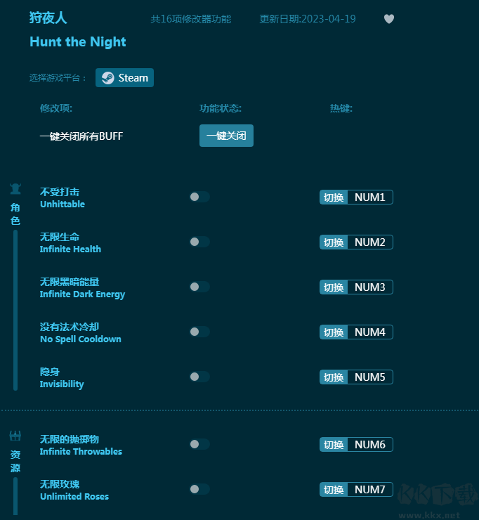 《狩夜人》黑暗幻想RPG游戏,带来像素黑暗冒险。这款《狩夜人修改器》为玩家提供不受打击,无限生命,无限黑暗能量,没有法术冷却,隐身,无限投掷物,无限玫瑰等众多辅助,帮助玩家游戏体验更轻松通关!有需要的朋友不要错过,KK下载站推荐大家下载体验!