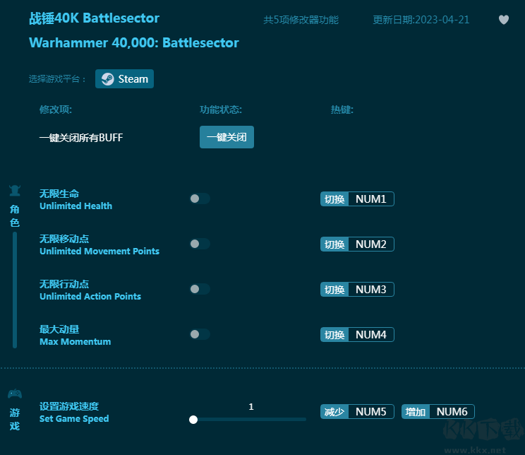 战锤40K战斗区域修改器专为游戏《战锤40K战斗区域》玩家们设计打造,内置无限生命,无限移动点,无限行动点,最大动量等强力辅助功能,帮助玩家轻松通关,游戏体验更佳!感兴趣的朋友不要错过,KK下载站推荐大家下载体验!