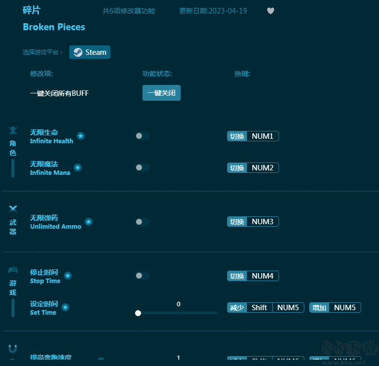 《碎片broken pieces》是一款恐怖冒险游戏,调查超自然现象的真相。这款《broken pieces修改器》为玩家提供无限生命,无限魔法,无限弹药,停止时间,提高奔跑速度等游戏辅助功能,帮助玩家游戏体验更轻松愉快!感兴趣的朋友不要错过,KK下载站推荐大家下载体验!
