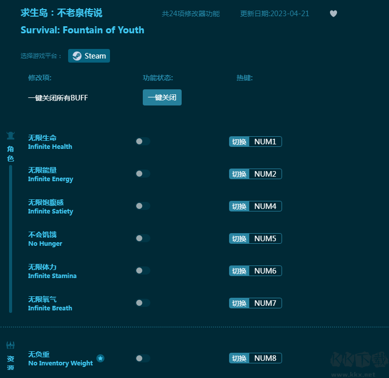 《求生岛不老泉传说》是一款开放世界生存游戏,20个独特岛屿等你探索。KK下载站带来这款《求生岛不老泉传说修改器》为玩家降低游戏难度,提供无限生命,无限能量,无限饱腹感,不会饥饿,无限体力,无限氧气等丰富的游戏辅助,游戏体验更精彩!感兴趣的朋友不要错过,KK下载站推荐大家下载体验!