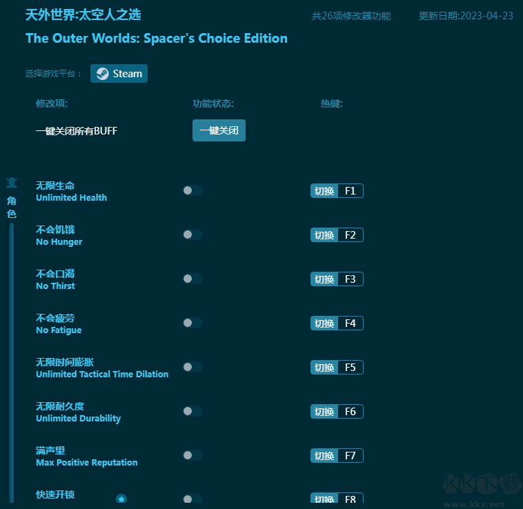 《天外世界太空人之选》是经典游戏《天外世界》的重制版,经典游戏喜欢的玩家一定不要错过。而这款《天外世界太空人之选修改器》能让玩家游戏体验更轻松爽快,提供无限生命,不会饥饿,不会口渴,不会疲劳,无限耐久度等众多强力辅助,游戏轻松通关!感兴趣的朋友不要错过,KK下载站推荐大家下载体验!