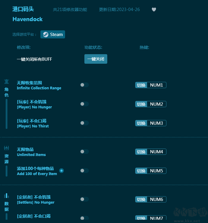 《港口码头》是一款全新的海上都市模拟建造游戏,建造你的海上城市,为来往的生存者提供帮助。KK下载站带来这款《港口码头修改器》为玩家提供无限收集范围,不会饥饿,不会口渴,无限物品等众多游戏辅助,让玩家游戏体验更轻松愉快!感兴趣的朋友不要错过,KK下载站推荐大家下载体验!