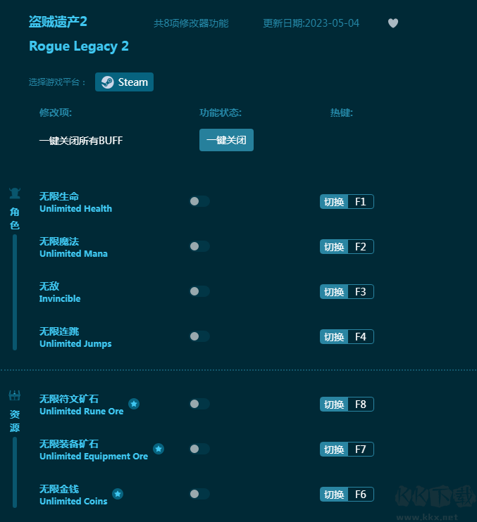 《盗贼遗产2》是一款继承式的rouge冒险游戏,每个角色的阵亡后,由他的后裔继续征战,且每个角色都有不同的特性哦!这款《盗贼遗产2修改器》能为玩家提供众多游戏帮助,包括无限生命,无限魔法,无敌,无限连跳,无限符文矿石,无限金钱等游戏辅助,游戏体验更佳,让你欲罢不能!有需要的朋友不要错过,KK下载站推荐大家下载体验!