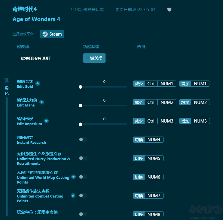 《奇迹时代4》已经正式上限,奇迹时代系列第四作,带你统治奇幻世界。这款《奇迹时代4修改器》可以帮助玩家大幅降低游戏难度,提供无限金钱,无限法力值,瞬间研究,无限急速生产,无限生命值,无限战斗施法点数等十三项游戏辅助,让玩家游戏通关更轻松!有需要的朋友不要错过,KK下载站推荐大家下载体验!