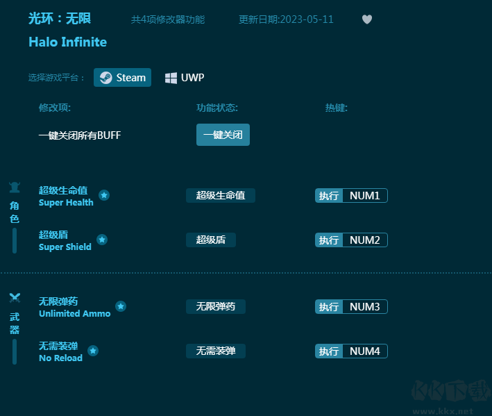 《光环无限》是光环5的正版续作,带来全新战役剧情体验!这款《光环无限修改器》能够为玩家提供免费的强力游戏辅助,包括超级生命值,超级盾,无限弹药,无需装弹等功能,帮助玩家轻松通关,游戏体验更爽快!有需要的朋友不要错过,KK下载站推荐大家下载体验!