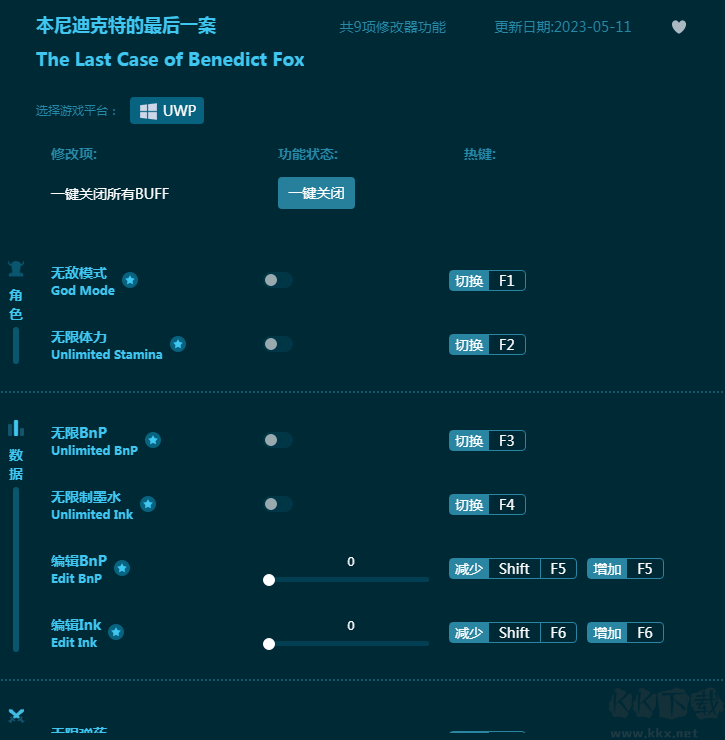 《本尼迪克特福克斯的最后一案》是一款克苏鲁风格的冒险解谜游戏,化身侦探与恶魔为伍。这款《本尼迪克特福克斯的最后一案修改器》提供玩家无敌模式,无限体力,无限制墨水,无限弹药等多项游戏辅助功能,帮助玩家游戏体验更佳!感兴趣的朋友不要错过,KK下载站推荐大家下载体验!