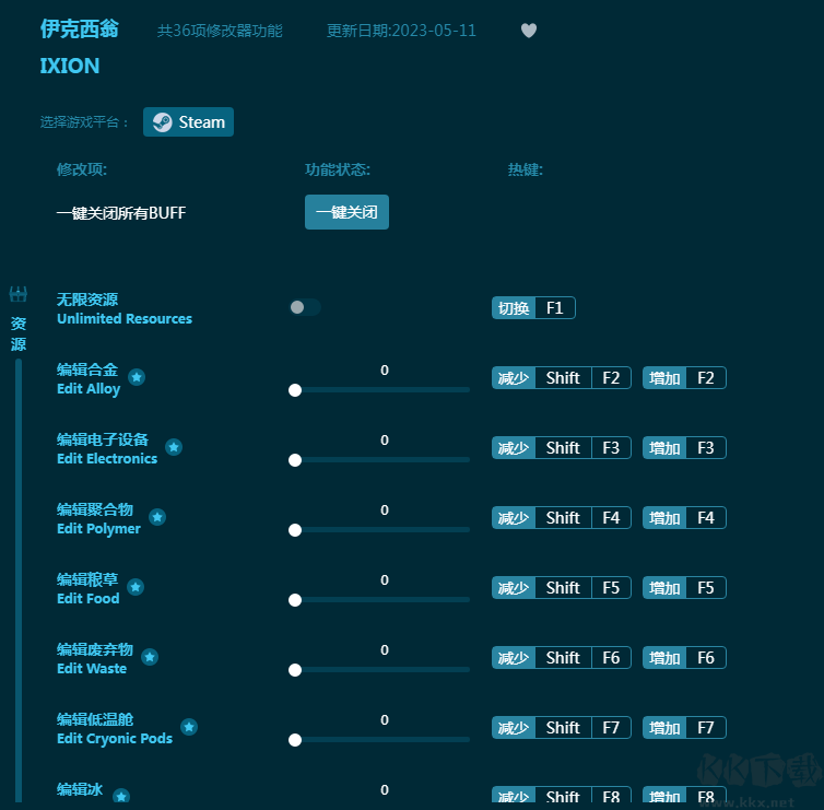 《伊克西翁》宇宙探索游戏,在黑暗中寻找人类新的希望。这款《伊克西翁修改器》为玩家提供全能游戏辅助,包括无限资源,无限科学,0能量消耗,最高信任度,快速建筑建造等三十六项游戏辅助功能,涵盖游戏各方面,帮助玩家游戏更顺利!感兴趣的朋友不要错过,KK下载站推荐大家下载体验!