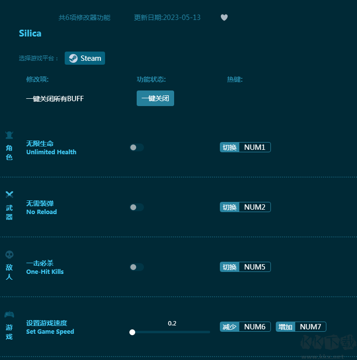 《Silica》是一款即时战略射击游戏,探索星球和怪物战斗。KK下载站带来《Silica修改器》提供玩家无限生命,无需装弹,一击必杀,游戏速度等多项游戏辅助功能,让玩家的战斗更爽快,游戏体验更佳!感兴趣的朋友不要错过,KK下载站推荐大家下载体验!