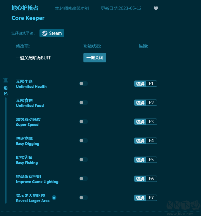 《地形护核者》是一款采矿冒险游戏,挖掘地下世界,探索地下的奥秘。这款《地形护核者修改器》为玩家提供无限生命,无限食物,超级移动速度,快速挖掘,轻松钓鱼,提高游戏照明等众多游戏辅助,帮助玩家游戏更轻松,游戏体验更佳!感兴趣的朋友不要错过,KK下载站推荐大家下载体验!