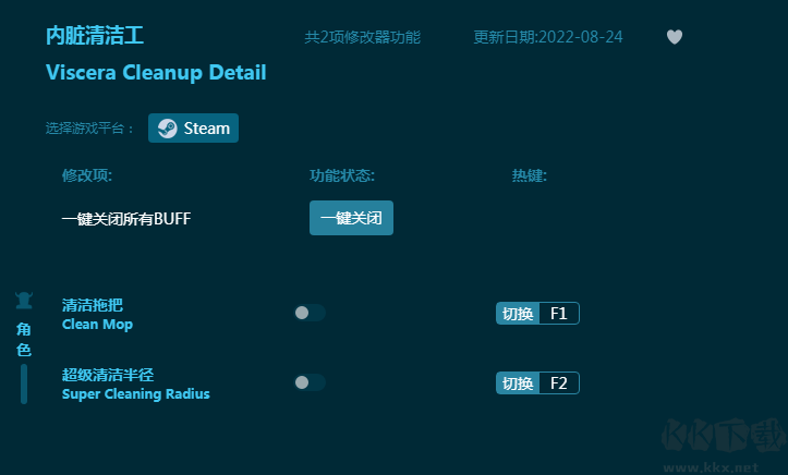 内脏清洁工修改器专为游戏《内脏清洁工》玩家打造,玩家在游戏扮演清洁工,打扫游戏中的命案现场。内脏清洁工修改器提供玩家清洁拖把,超级清洁半径的游戏辅助功能,帮助玩家快速清理,轻松通关!有需要的朋友不要错过,KK下载站推荐大家下载体验!