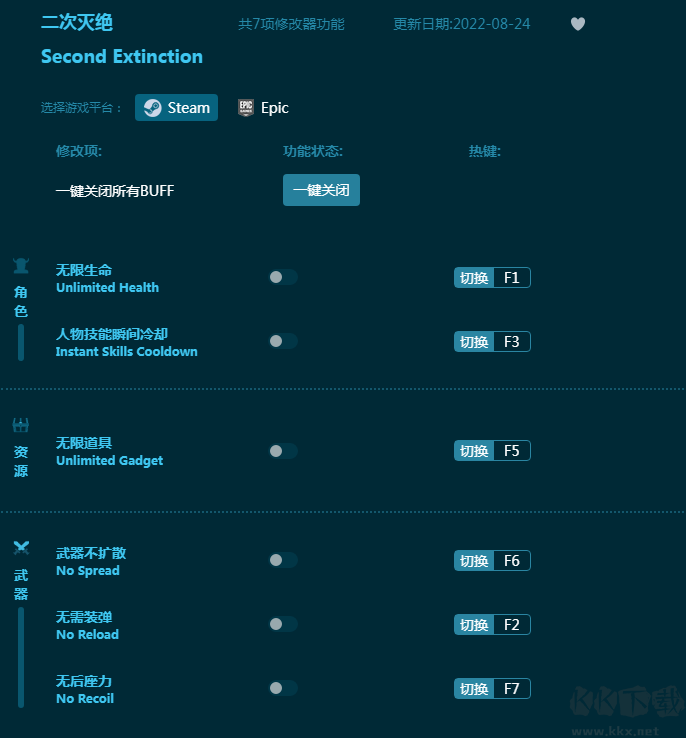 《二次灭绝》变异恐龙入侵,将他们再次剿灭!《二次灭绝修改器》帮助玩家获得无限生命,技能瞬间冷去,无限道具,无需装弹,无后坐力等强力辅助功能,游戏战斗绝对爽快!有需要的朋友不要错过,KK下载站推荐大家下载体验!