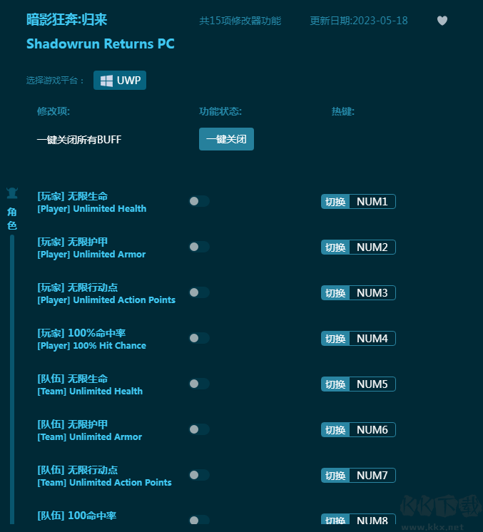 《暗影狂奔归来》整个西雅图等你闯荡。这款《暗影狂奔归来修改器》为玩家提供无限生命,无限护甲,无限行动点,100%命中率等众多强力游戏辅助功能,帮助玩家轻松通关!有需要的朋友不要错过,KK下载站推荐大家下载体验!
