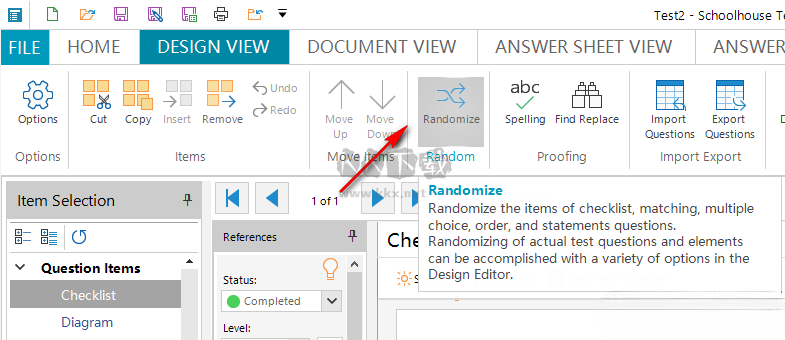 实际测试问题和元素的随机化可以通过设计编辑器中的各种选项来完成