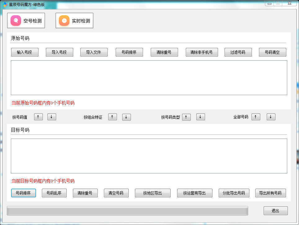 号码处理:号码排序、清除重复号码、清除非手机号码、过滤号码,按指定手机号码数值、按连号豹子号等靓号规则、按运营商等方式处理号码。