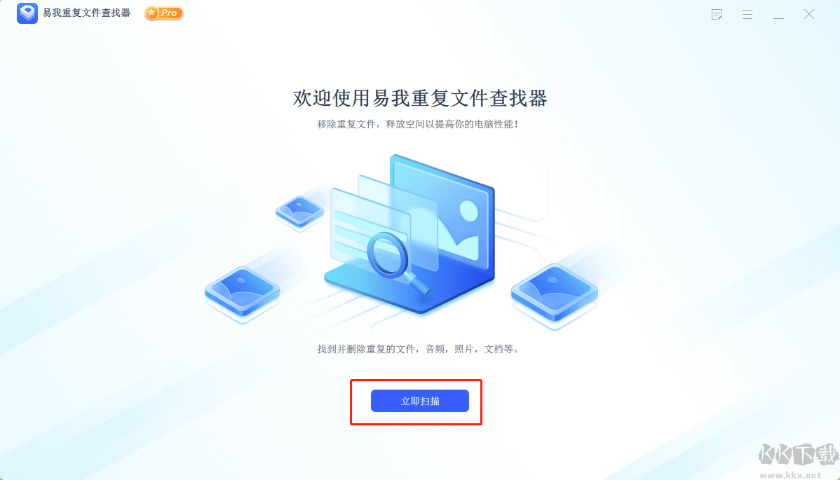 易我重复文件查找器官网版是一款操作起来非常简单实用的重复文件查找软件,能够支持用户在这里快速的对重复的文件进行清理,使用起来也非常的快速,并且还能支持用户一键或按类别清理重复的图片,视频,音频和文档等内容,感兴趣或者有需要的小伙伴就快来kk网站下载体验一下吧。