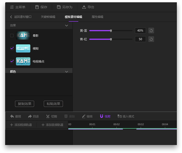 Edit是可以对视频片段进行关键帧编辑、属性编辑和模板编辑。