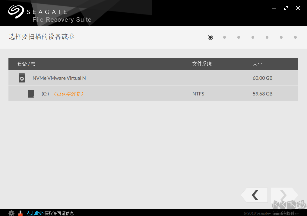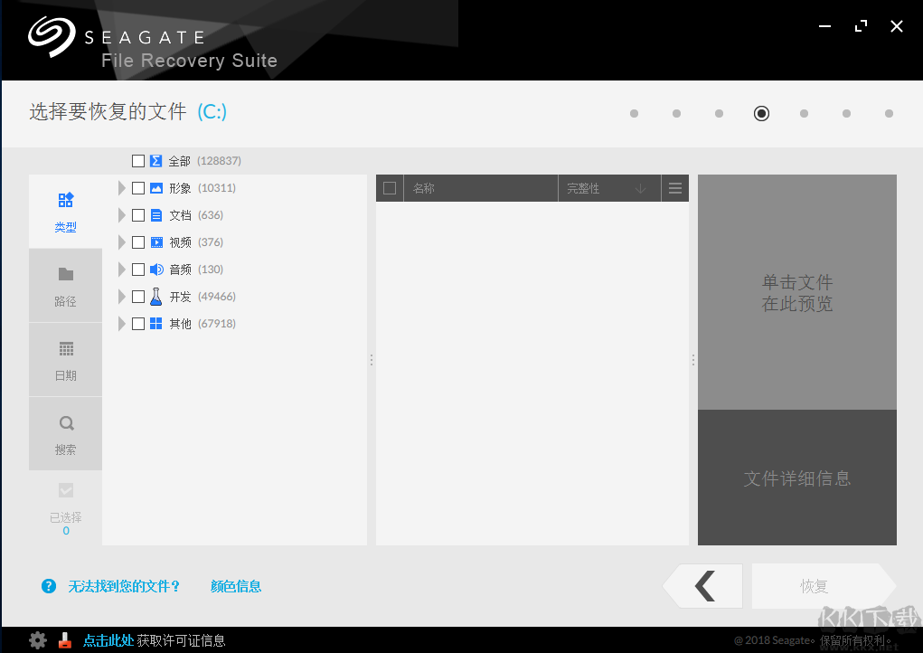 1、下载安装好Seagate Recovery Suite,点击恢复文件功能,选择需要恢复扫描的设备;
