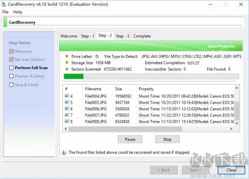 6、支持JPG图片、Exif图片、NEF文件恢复、CR2文件恢复、SR2文件恢复等各种RAW数码照片的扫描恢复,支持各种数码相机和摄影机拍摄的照片。