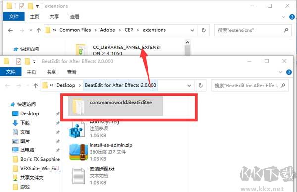 2、把com.mamoworld.BeatEditAe目录拷贝至C:\Program Files (x86)\Common Files\Adobe\CEP\extensions\路径下。