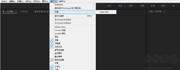 4、启动After Effects程序,在上方菜单栏中依次选择窗口-扩展-BeatEdit,便可启动该工具进行工作。