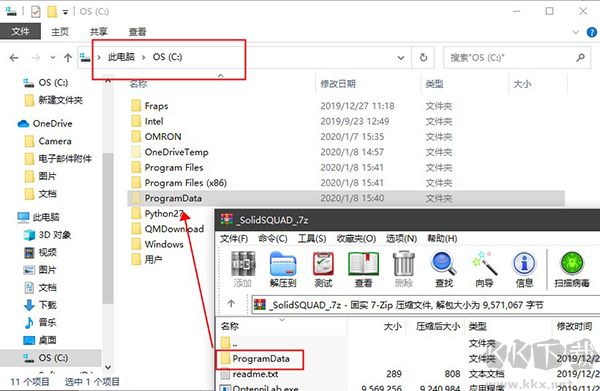 3、软件安装完成后,将_SolidSQUAD_文件解压出来,复制ProgramData到C盘根目录下;