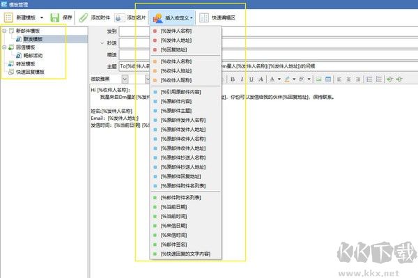 8、可预先编辑模板,后续能一键发送邮件,一键回复邮件。