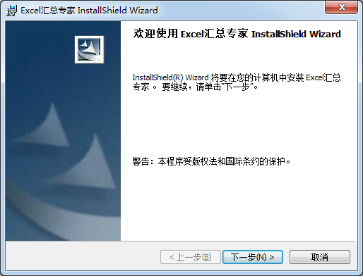 Installshield(R)Wizard将要在您的计算机中安装Excel汇总专家。要维续,请单击”下—步。