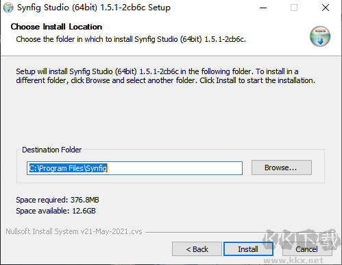 安装向导默认设置的软件默认安装路径为C:\Program Files (x86)\Synfig