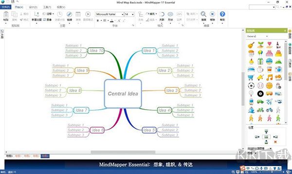 3、在MindMapper里,直接点击主题就可以进行内容的输入以及修改。我们还可以直接拖动添加右边的“剪贴画”代替文字给图表增加趣味性。