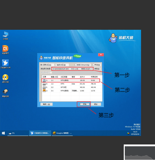 万能装机大师自动将系统GHO安装到硬盘第一分区的方法