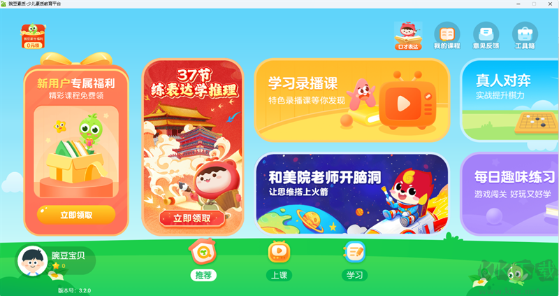 豌豆素质是一款3-12岁儿童的素质教育应用,课程覆盖益智探索、口才表达、编程、美术等多样领域,按年龄设置阶梯体系,学龄前筑牢基础,小学阶段衔接校内重难点和拓展思维,采用国际认可的6E学习法,以游戏化情景激发兴趣,引导探索理解、表达观点,延伸知识应用场景,课后生成学习报告,提供课堂回顾,搭配家长辅导内容与监课功能,形成完整学习闭环,让孩子在趣味中提升思维与表达能力。