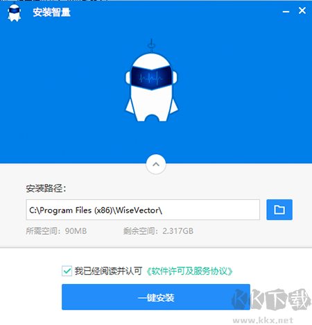 3、自定义安装路径,需要90MB空间,然后点击“一键按装”;