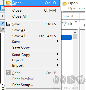 1、首先第一步我们打开软件之后先点击file功能,在打开的选项中选择点击open然后打开需要添加的文件。