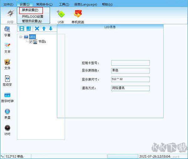 led player(显示屏控制软件)是一款专业而且功能强大的LED显示屏控制软件,界面美观,还有独特的分离式预览窗口设计,方便操作使用。软件包含编写字幕、文本输入、炫动字效果、数字时钟、表盘及屏幕计时等多项功能,可以帮助你编辑LED显示屏中的节目,把丰富的多媒体内容播放到LED屏幕上。它还支持单击发送、USB发送和集群发送节目,而且会随固态硬件性能提升自动升级,进一步提高控制性与稳定性。需要的朋友快来下载试试吧!