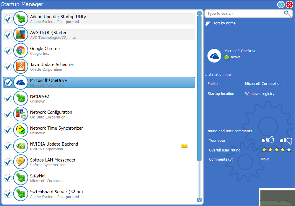 要从启动中删除一个程序,只需单击它左边的圆圈来删除蓝色的复选标记。取消选中后,该程序将移动到列表的底部,其图标将变成灰色,所以你可以告诉它已经被停用。要再次激活它,您只需通过单击空圆圈使复选标记重新出现。如果你想把它从列表中一劳永逸地删除,将鼠标悬停在它的名字上,然后点击红色的垃圾箱按钮。