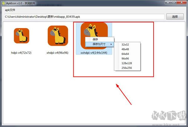 2、ApkIcon 绿色版支持将图标保存为多种尺寸。