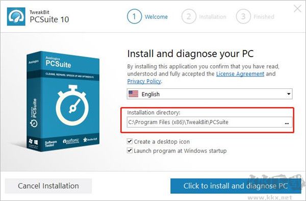 安装向导默认设置的软件默认安装路径为C:\Program Files (x86)\TweakBit\PCSuite