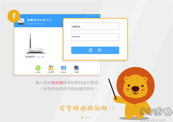 第一次使用瑞星路由安全卫士时,需要先登录路由器。用户只要打开软件,并在右侧的位置输入路由器设置页面的用户名和密码即可。不清楚上述账号的朋友可以去找一下路由器的说明书,里面会有明确的提示。