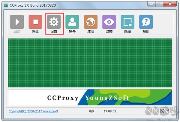 1、运行CCProxy代理服务器软件,在控制面板上,点击“设置”;