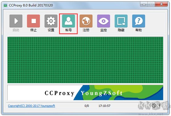 3、回到CCProxy的主面板上,点击“设置”旁边的“账号”;