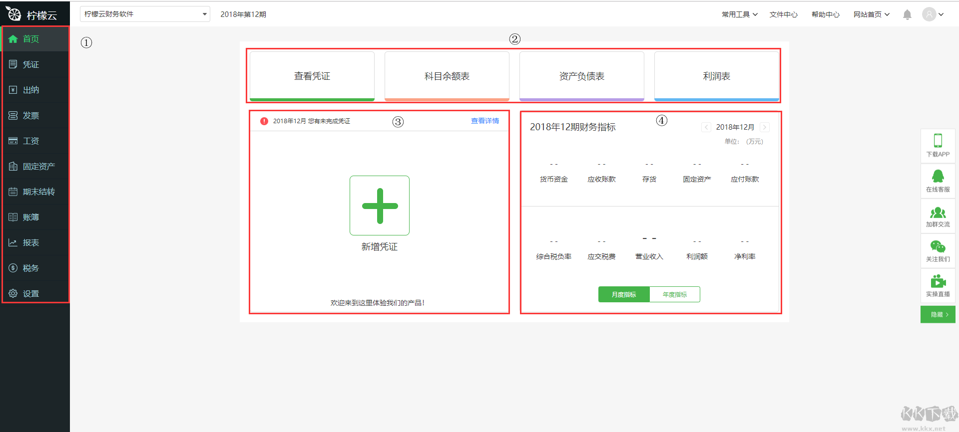 1、选你登录软件,登录完成后进入柠檬云财务软件主界面