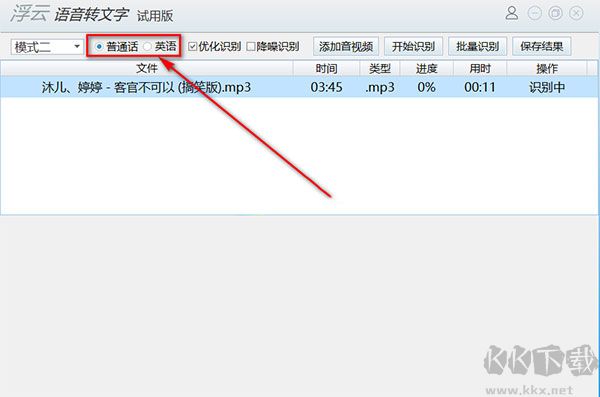 2、选定需要辨认的语言,当前可选择普通话与英文。