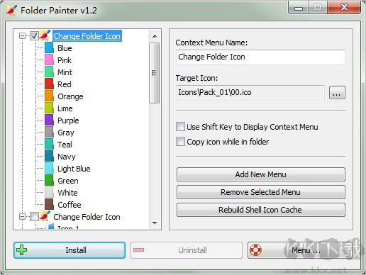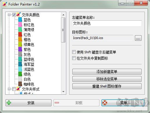 6、可快速安装或卸载 Folder Painter 的系统右键菜单项。