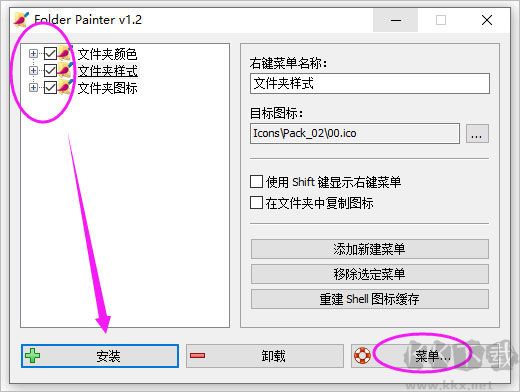 5、首先勾选需要改变文件夹的颜色或样式、图标,然后点击安装;
